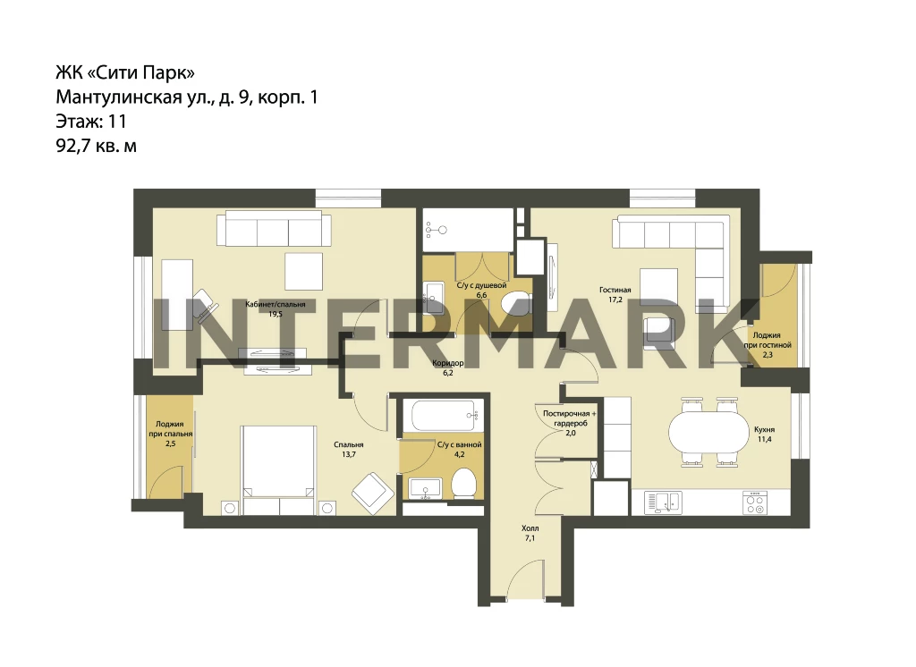 Two-bedroom apartment with newly completed renovation and stunning views in the City Park residential quarter near Krasnaya Presnya Park and the embankment of the Moskva River. The interior and zoning of the space were created for themselves. High-quality finishes are made: parquet made of solid American walnut, 3 varieties of warm marble, handmade mosaic. The apartment is equipped with water purification systems, supply and exhaust ventilation, air conditioning and premium plumbing. The layout includes a daylight-flooded kitchen-living room with a loggia, 2 bedrooms with a loggia, a large beautiful hall with a dressing room and 2 bathrooms. The windows are oriented to 3 cardinal directions, allowing you to enjoy the panorama of the capital and observe the movement of the Sun around the apartment.