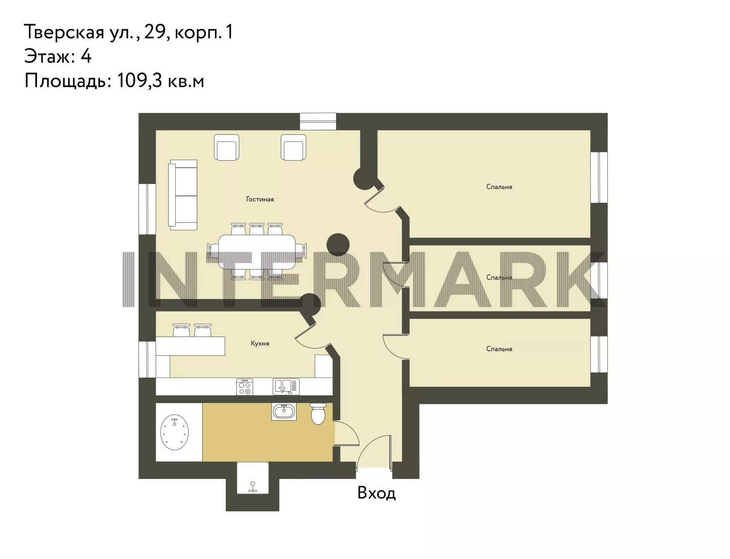 4-rooms 109.3 sq.m. apartment for sale, Tverskaya Street, 29, korp. 1