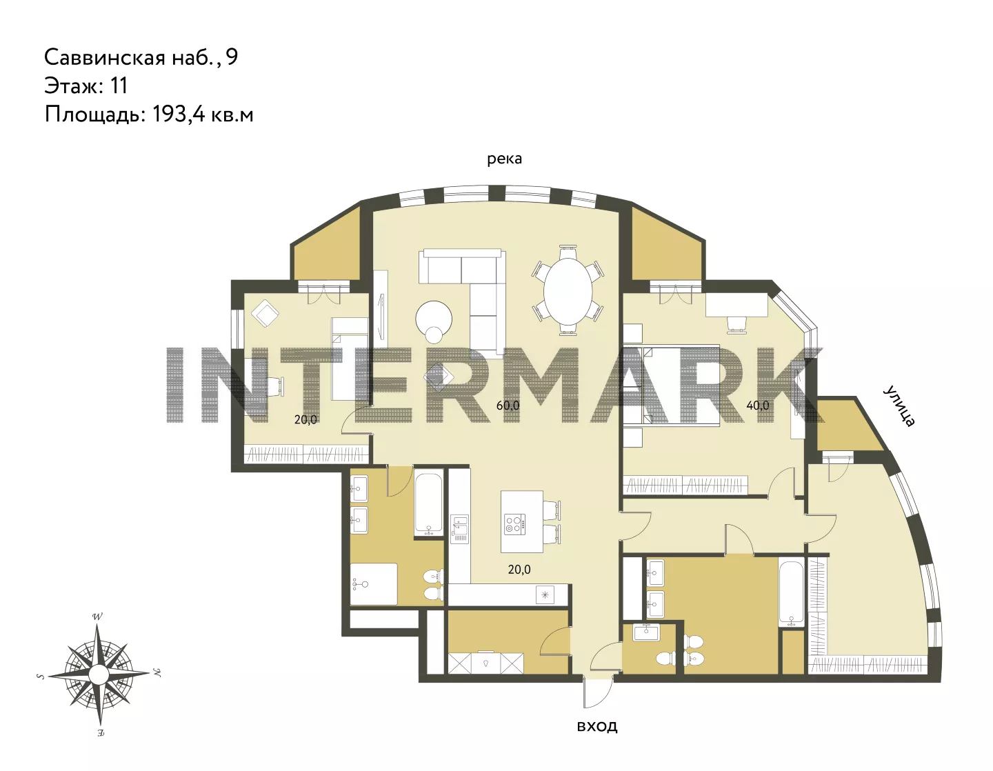 3-rooms 193.4 sq.m. apartment for sale, Savvinskaya Embankment, 9