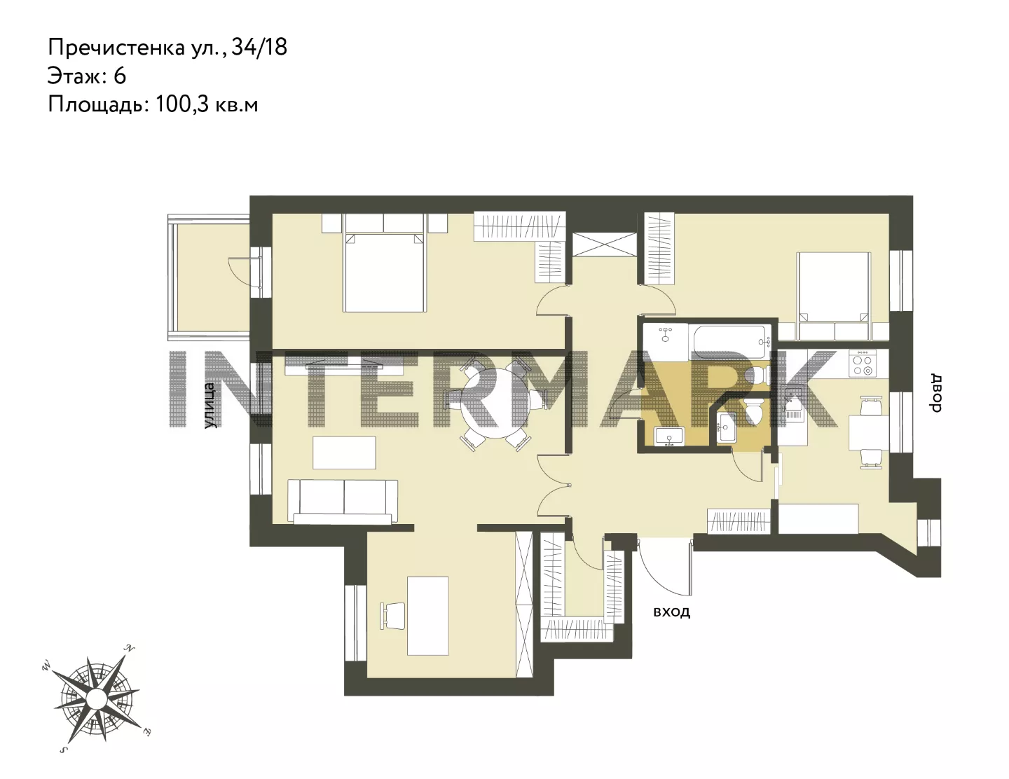 Buy 4-rooms apartment 100.3 sq.m, 6 floor, Prechistenka Street, 34/18