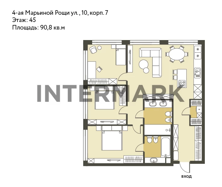 Buy 4-rooms apartment 90.8 sq.m, 45 floor, 4th Maryinoy Roschi Street, 10, korp. 7