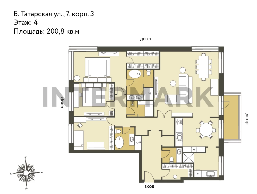 4-rooms 200.8 sq.m. apartment for sale, Bolshaya Tatarskaya Street, 7, korp. 3