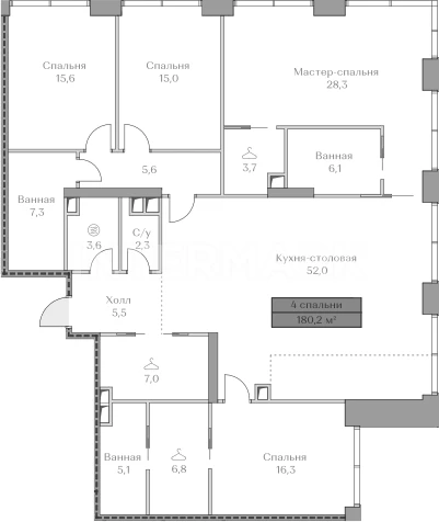 4-rooms apartment, Luzhnetskaya Embankment, 2/4s1, RC Collection Luzhniki, 180.2 sq.m, 13 floor, ID 12550015412