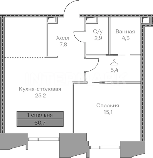 1-rooms apartment, Luzhnetskaya Embankment, 2/4s1, RC Collection Luzhniki, 60.7 sq.m, 6 floor, ID 12550016212