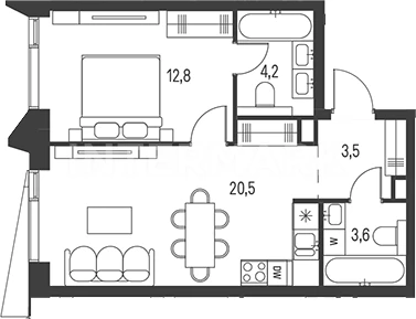 1-rooms apartment, Volokolamskoye Highway, 28, RC Moments , 44.6 sq.m, 26 floor, ID 14830016170