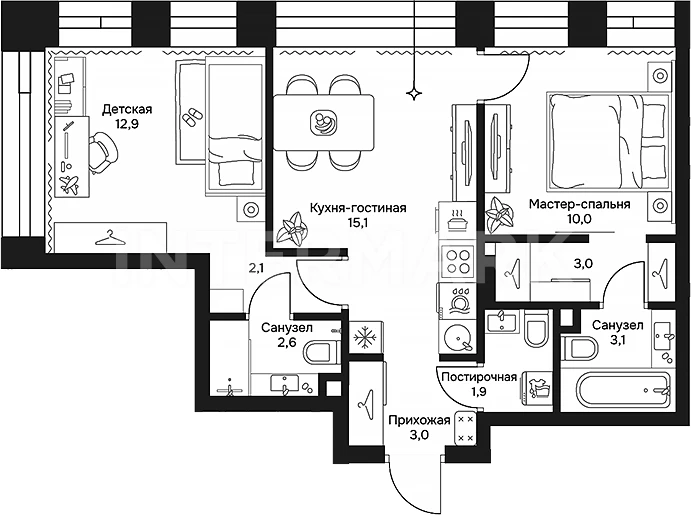 2-rooms apartment, Serpukhovsky Val Street, dom 7, 53.7 sq.m, 13 floor, ID 16040015885