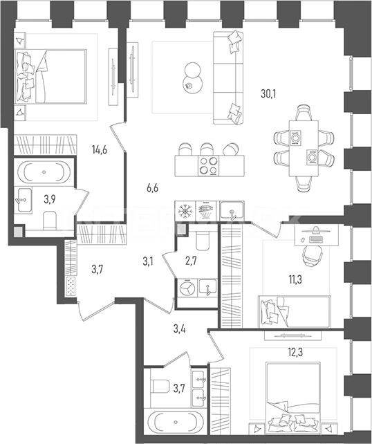 3-rooms apartment, 2nd Paveletsky Drive, 4/6, RC PAVE, 95.4 sq.m, 12 floor, ID 17240015753