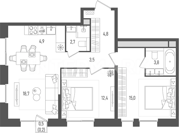 2-rooms apartment, 2nd Paveletsky Drive, 4/6, RC PAVE, 66.0 sq.m, 26 floor, ID 17240015757