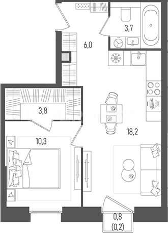 1-rooms apartment, 2nd Paveletsky Drive, 4/6, RC PAVE, 42.2 sq.m, 12 floor, ID 17240015759