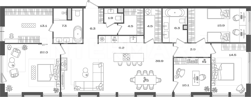 3-rooms apartment, 2nd Paveletsky Drive, 4/6, RC PAVE, 156.4 sq.m, 27 floor, ID 17240015762