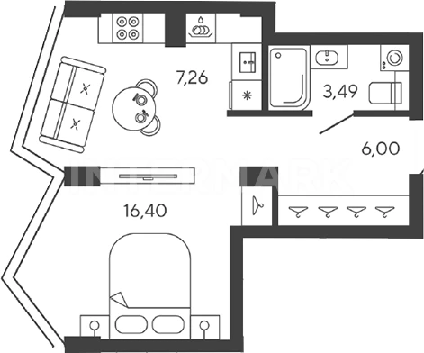1-rooms apartment, ulitsa Novaya Doroga, 11Bs2, 33.2 sq.m, 8 floor, ID 17510015616