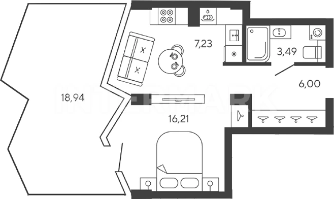 1-rooms apartment, ulitsa Novaya Doroga, 11Bs2, 38.6 sq.m, 6 floor, ID 17510015617