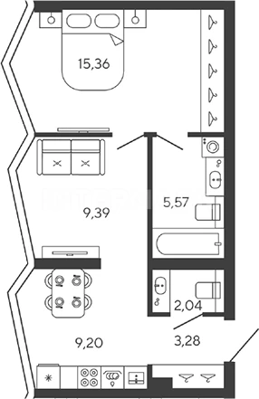 1-rooms apartment, ulitsa Novaya Doroga, 11Bs2, 44.8 sq.m, 2 floor, ID 17510015623