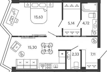 1-rooms apartment, ulitsa Novaya Doroga, 11Bs2, 50.2 sq.m, 2 floor, ID 17510015627