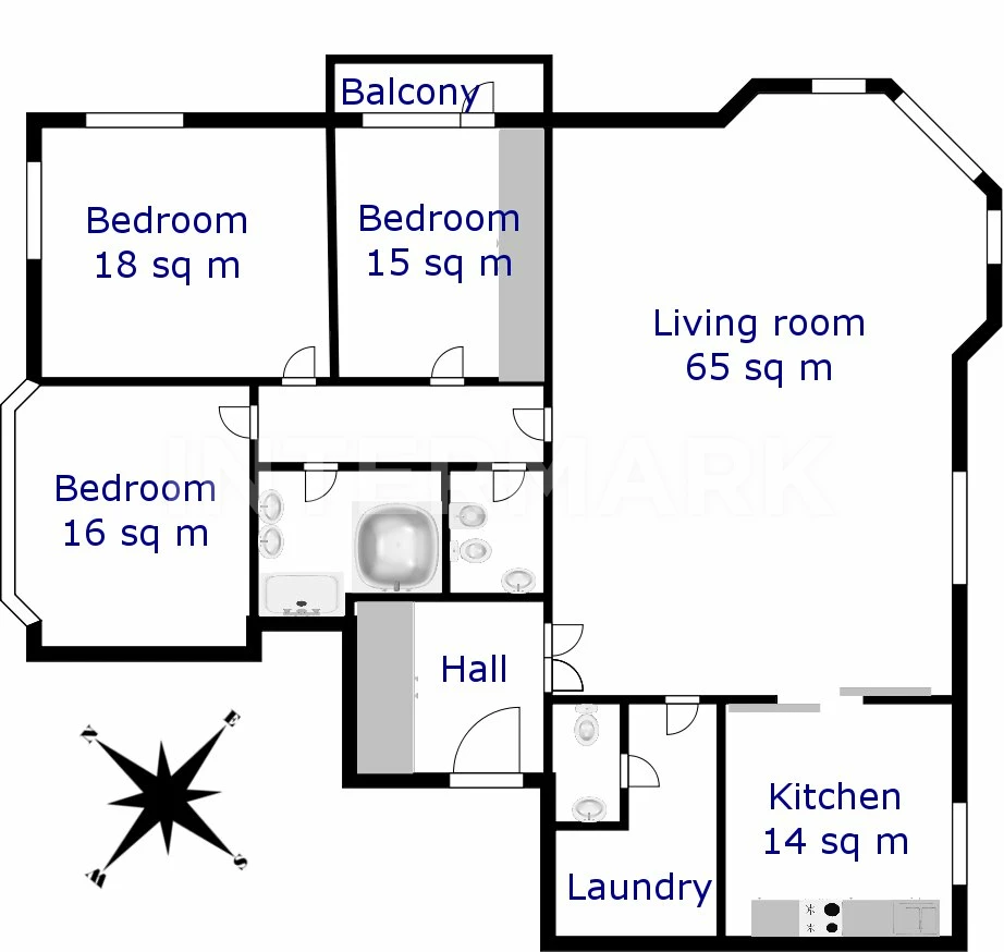 An unfurnished three bedroom apartment is offered for rent fully equipped with all necessary household appliances. The building offers gated territory, round-the-clock security, underground parking. It is conveniently located close to Oktyabrskaya metro station. The rental price includes one parking space.