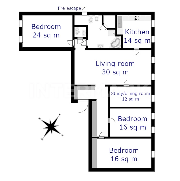 In Tverskaya str.,12 идв 8 here is presented a 3-bedroom apartment. It is spacious, bright and well organized, with high ceilings and windows facing the yard. The layout includes: 3 bedrooms, living room, dinner room/study, separated kitchen, bathroom with a shower cabin, bathtub and sauna and guest toilet. The apartment is unfurnished. Parking is in the closed secure courtyard (one place but not fixed).