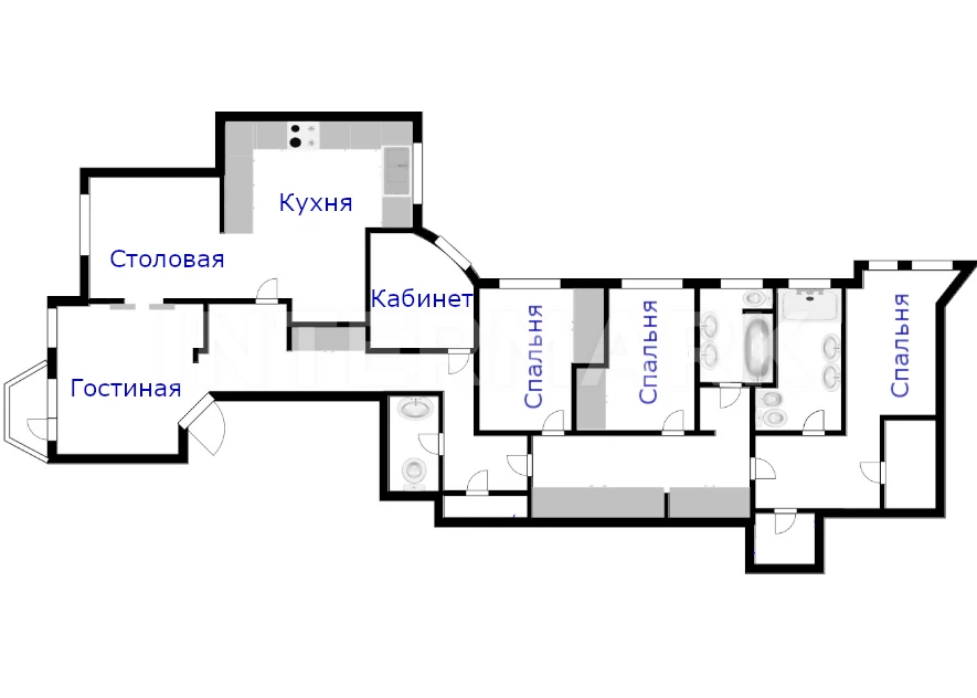 A spacious three bedroom apartment located in Korovina apartment building which benefits from concierge service. The property benefits from practical floor plan, and would be ideal both for entertaining and comfortable family living. The advantage of this apartment is excellent kitchen complete to high standards, designer bathrooms, two dressing rooms and number of built-in closets. The rental price includes a secured parking space in the yard.