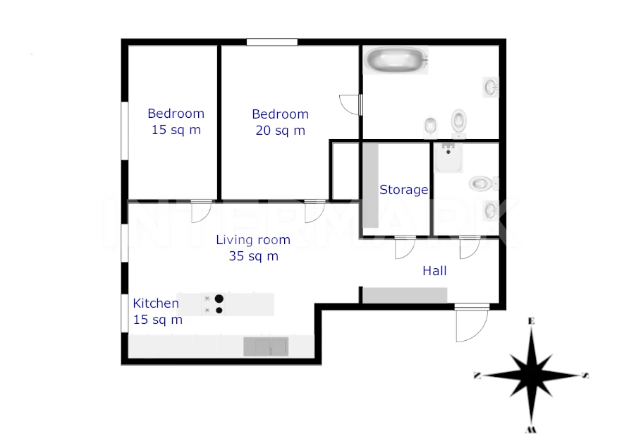Stylish spacious two bedroom apartment is situated in the residential complex “Korona Air”. It includes hall, living-dining-kitchen area, two bedrooms, walk-in wardrobe, bathroom and guest WC. The property comes designer renovated and fitted with high quality decoration materials. However, the noble benefit would be big panoramic windows overlooking park area around the complex. The development offers large territory with restaurants, medical centers, bank and other amenities. It also provides round-the-clock concierge service and security system. An underground parking space is available at extra charge.
