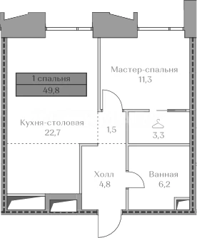 Купить 1-комнатную квартиру, Лужнецкая набережная, 2/4с1, ЖК Collection Luzhniki (Коллекция Лужники), 49.8 кв.м, 9 этаж, ID 12550016171