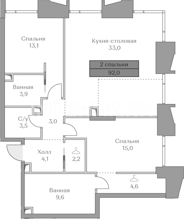 Площадь: 92 м²