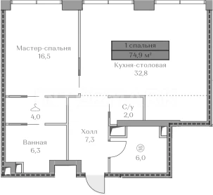 Площадь: 74.9 м²