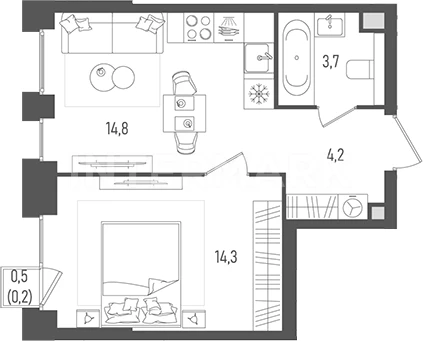 Квартира, 1 комната ЖК PAVE 2-й Павелецкий проезд, 4/6, Фото 1