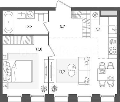 Интерьер лобби наполнен эстетикой горных пород — натуральные природные оттенки и фактурность отделочных материалов создают в общественных пространствах особую ауру спокойствия и безмятежности. В холлах обустроены уютные гостиные, комфортные зоны ожидания, помещение для хранения колясок, лапомойка. Для занятий спортом оборудована фитнес-комната.