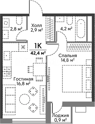 Купить 1-комнатную квартиру, Мосфильмовская улица, корп.1, 2, ЖК Сторис на Мосфильмовской (Stories), 42.4 кв.м, 18 этаж, ID 13510016547