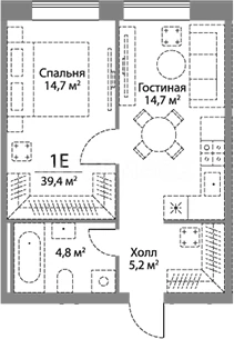 Площадь: 39.4 м²