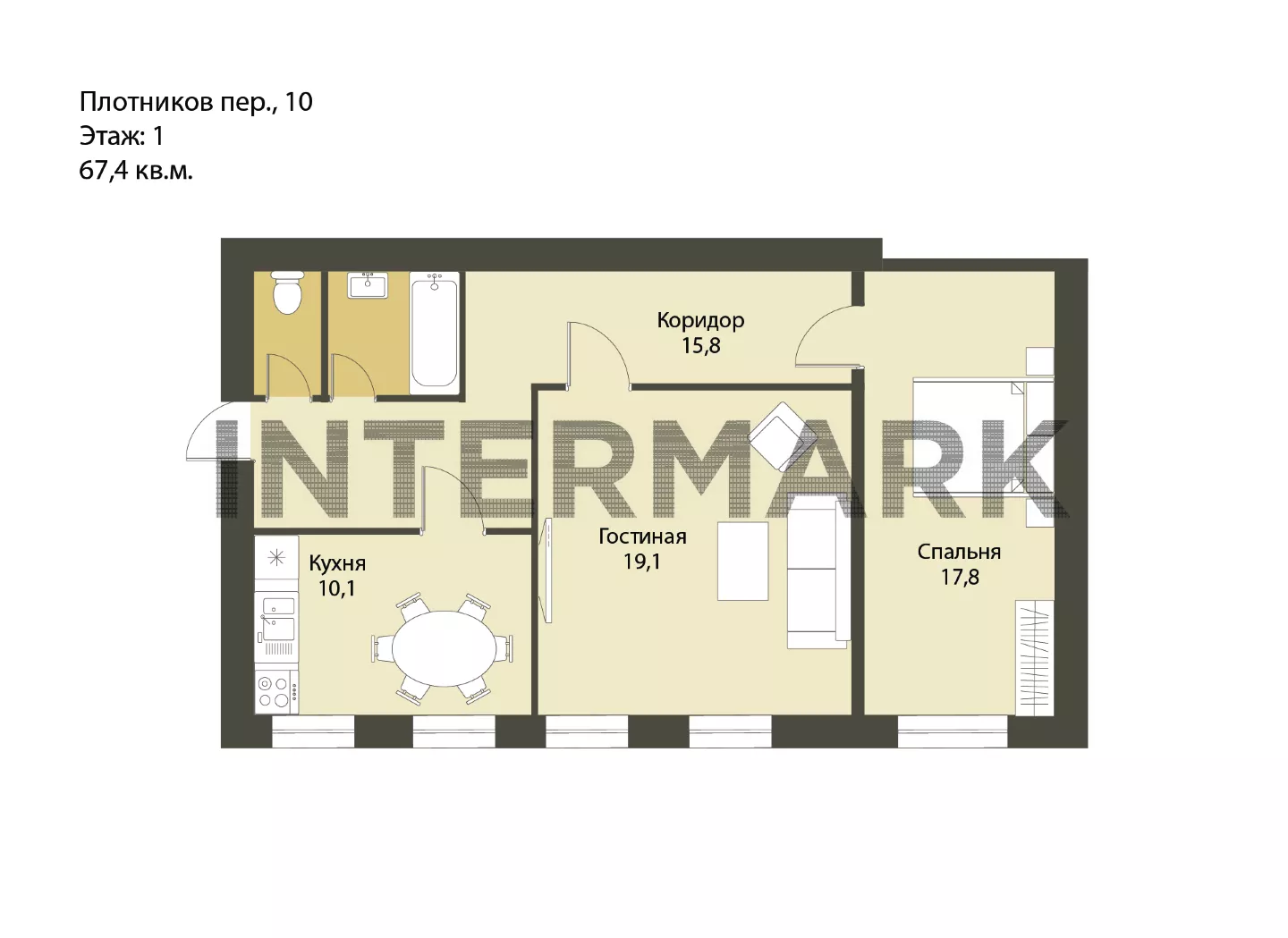 Невероятно уютная 2-комнатная квартира площадью 67,4 м2 с высокими потолками в знаковом доме в Плотниковом переулке в районе Арбата. Планировка включает 2 просторные комнаты, большую кухню, вместительный коридор и раздельный с/у. Жилое пространство наполнено дневным светом благодаря большому количеству окон. Редкая высота потолков 3,6 метров создает ощущение еще большего простора. В квартире очень тихо. Аккуратный отремонтированный подъезд, для жильцов предусмотрена наземная парковка.. Дом расположен в глубине переулка, во дворе разбит собственный зеленый сад. В шаговой доступности — вся насыщенная инфраструктура исторического центра столицы.