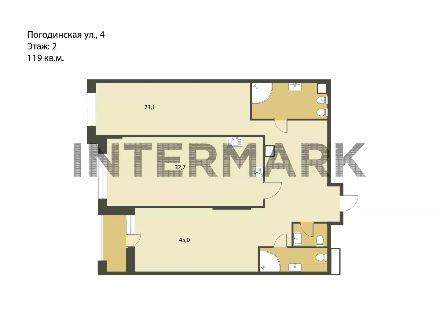 Трехкомнатная квартира без отделки площадью 119 м2 в премиальном жилом комплексе Grand Deluxe на Плющихе в уютном историческом центре столицы. Пространство позволяет разместить кухню-гостиную, 2 спальни, гардеробную и 2 ванные комнаты. Высота потолков составляет 3,2 метра. В квартире установлена система очистки воды до уровня питьевой. Великолепные лобби с охраной и уютными зонами ожидания. Закрытая территория с ландшафтным дизайном, беседками, детскими площадками и прогулочными дорожками. В 3 минутах от дома расположены сквер Девичьего поля и Саввинская набережная. В шаговой доступности — вся насыщенная инфраструктура района Хамовники.