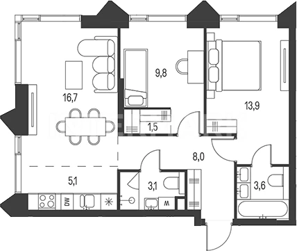 Квартира, 2 комнаты ЖК Moments (Моментс) Волоколамское шоссе, 28, Фото 1