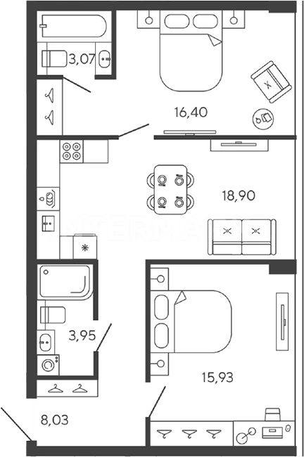 Квартира, 2 комнаты ЖК Новая 11 улица Новая Дорога, 11Бс2, Фото 1