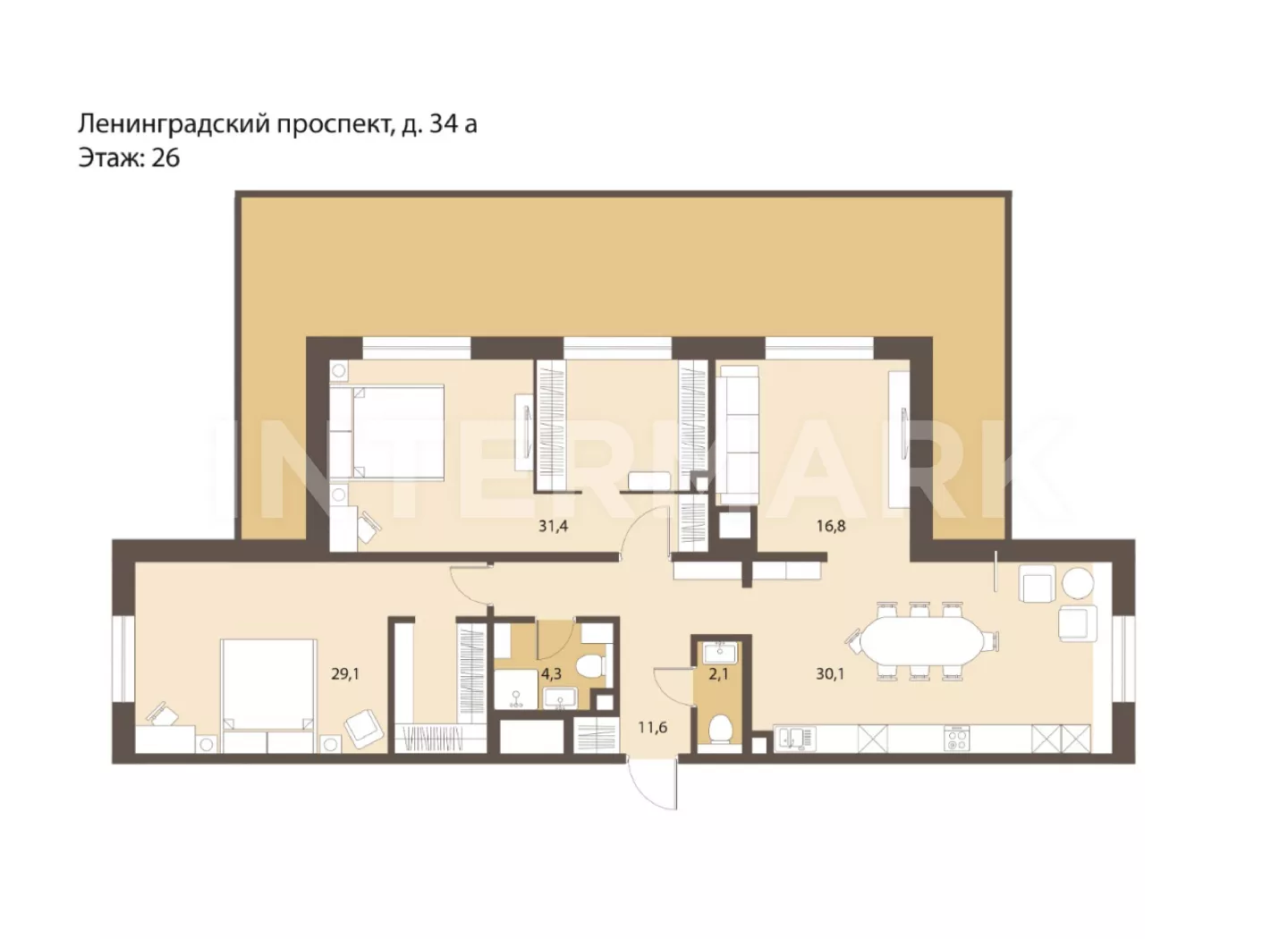 Видовой апартамент со стильной отделкой и роскошной террасой в ЖК бизнес-класса Alcon Tower в 10 минутах от Петровского парка и стадиона Динамо. Общая площадь 123 кв.м, площадь террасы 65 кв. м. Функционально спланированы 2 спальни со своими гардеробными, зона кухни-гостиной, 2 с/у. Возможно организовать дополнительную спальню. Великолепную инсоляцию обеспечивают 5 окон, выходящие на 3 стороны света, а мягкая, теплая палитра в интерьере создает атмосферу спокойствия и безмятежности. С террасы будущим жильцам открывается фантастическая панорама на Москву.
