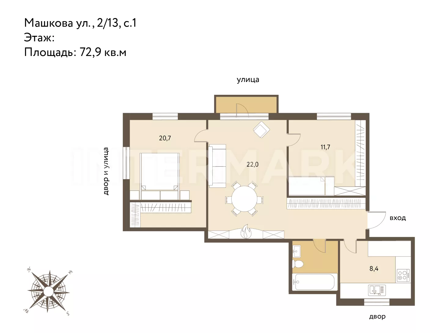 Компактная трехкомнатная квартира со стильным интерьером и шикарной инсоляцией в фасадном доме в небольшой исторической улочке района Чистых прудов. Спланированы гостиная комната с эффектным панорамным окном и выходом на открытый балкон, спальня с функциональной гардеробной, детская, кухня, совмещенный с/у. Выполнена светлая базовая лаконичная отделка с яркими акцентами. Окна ориентированы на 3 стороны света. Установлены системы кондиционирования воздуха.