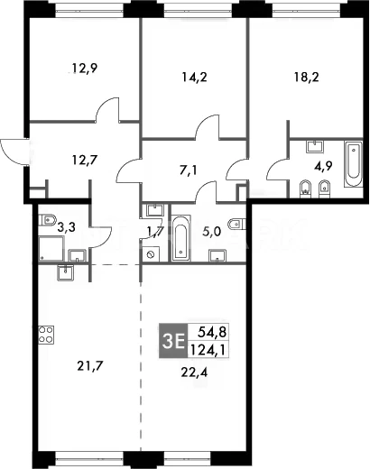 Площадь: 126.6 м²