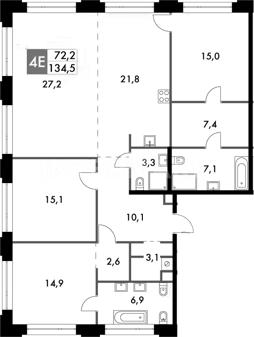 Купить 3-комнатную квартиру, улица Шеногина, 2, ЖК Sydney Prime, 138.2 кв.м, 2 этаж, ID 17330013459