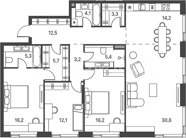 Купить 3-комнатную квартиру, Волоколамское шоссе, 28, ЖК Moments (Моментс), 128.8 кв.м, 38 этаж, ID 14830015417