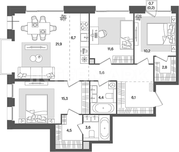 Количество комнат: 3