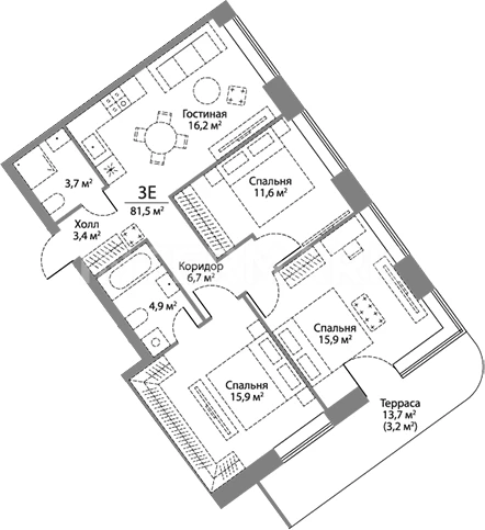 Купить 3-комнатную квартиру, Мосфильмовская улица, корп.1, 2, ЖК Stories на Мосфильмовской (Сторис), 81.5 кв.м, 5 этаж, ID 13510015569