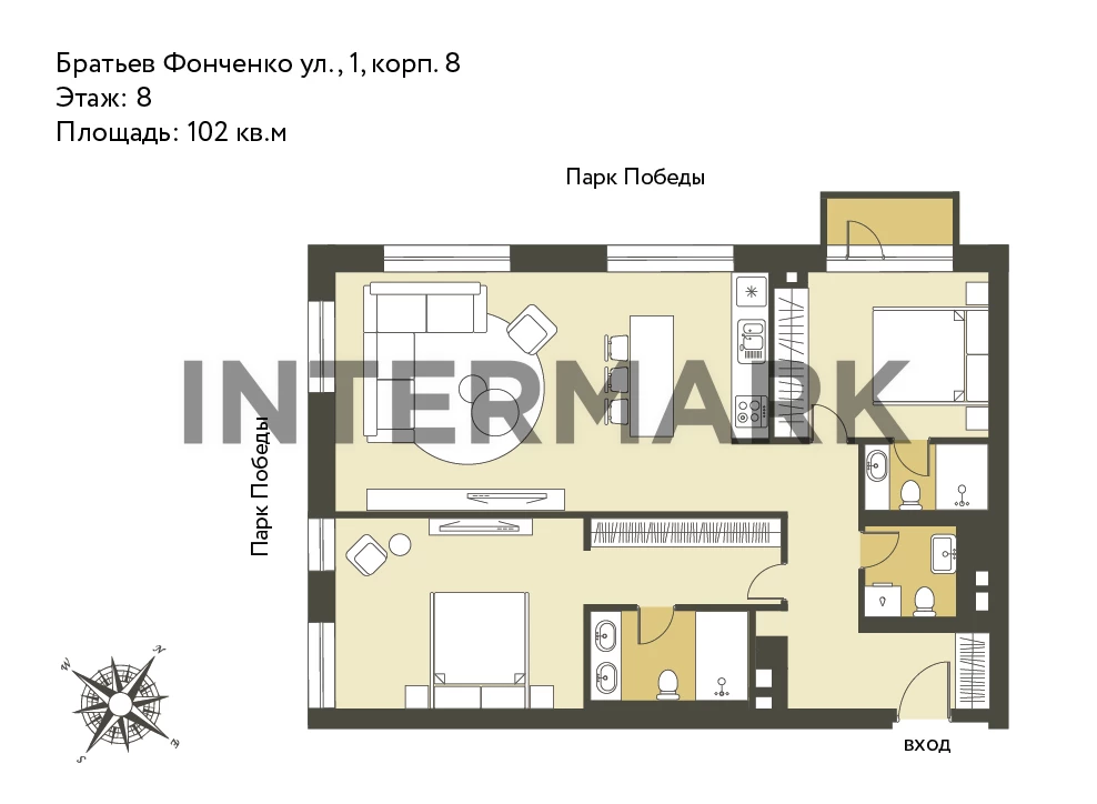 Невероятно воздушная квартира с 2-мя спальнями потрясающими видами на Поклонную гору и парк в клубном корпусе элитного жилого квартала Victory Park Residences. «Фишки» квартиры — это красивые виды изо всех окон и высокие потолки 3,3 м — квартира наполнена воздухом и светом. Спланированы кухня-гостиная с угловым остеклением, 2 мастер-спальни со своими с/у, гостевой с/у с постирочной зоной. Установлены высокие нестандартные межкомнатные двери. Выполнена чистовая премиальная отделка в стиле неодеко в сдержанной палитре, идеально гармонирующей с воздушной архитектурой дома и панорамами Поклонной горы за окном. Предусмотрена центральная система кондиционирования и фильтрации воздуха.