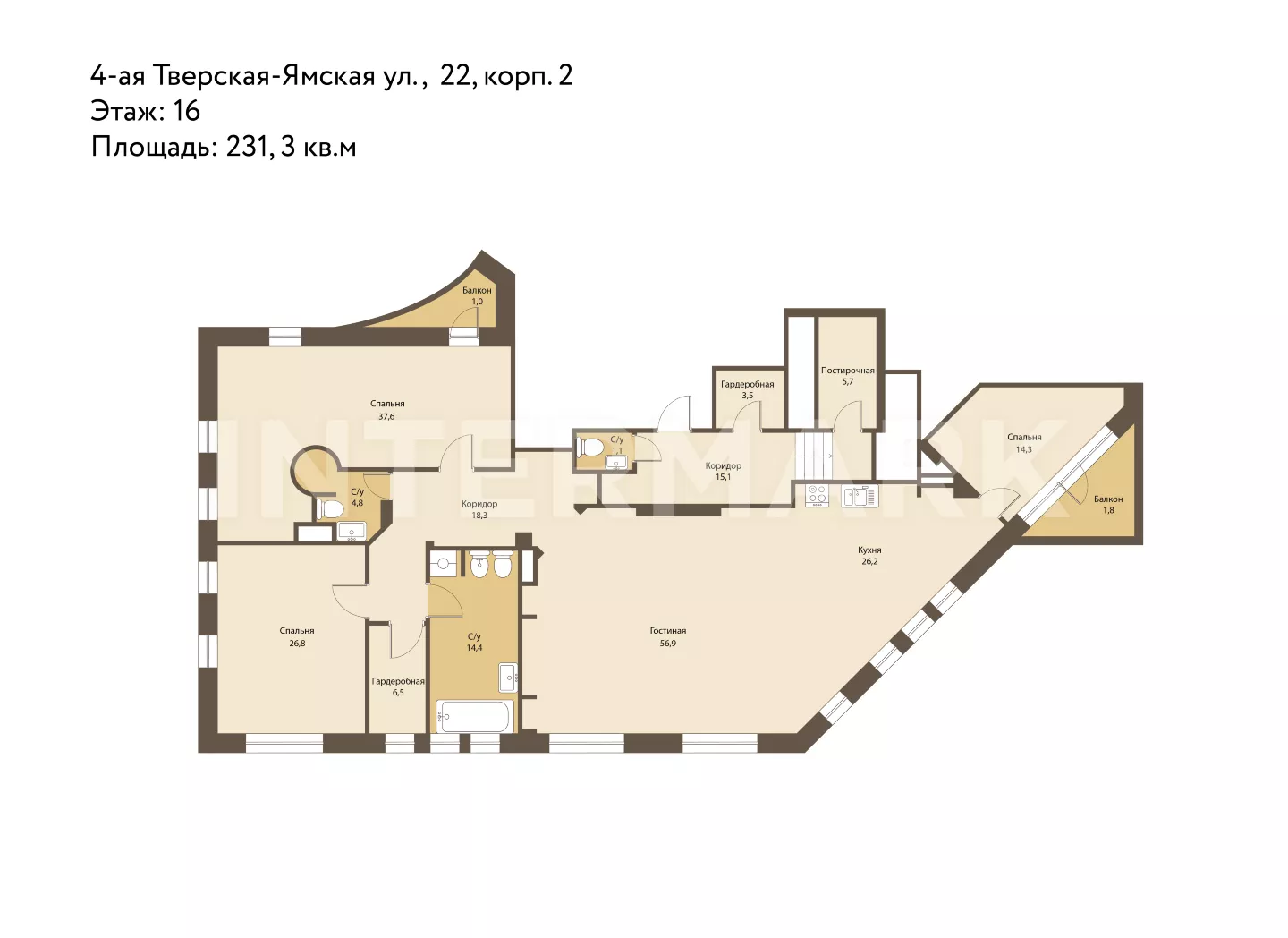Просторная четырехкомнатная квартира с открытыми видами на центр Москвы в монолитно-кирпичном доме 2003 года постройки с подземным паркингом в районе Тверской. Комфортная планировка включает роскошную зону кухни-гостиной, мастер-спальню с угловым остеклением, детскую 40 кв.м, кабинет, хозяйственный блок, гардеробную и 3 ванные комнаты. Огромные окна с широкими подоконниками буквально заливают жилое пространство лучами дневного света и открывают великолепную панораму на центр. Выполнена качественная отделка, на полу выложен паркет из красного дерева.