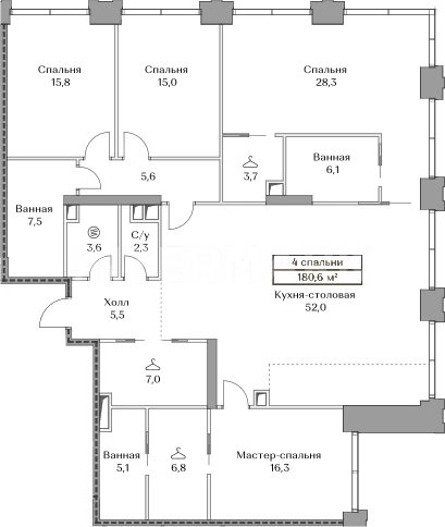 Площадь: 180.6 м²