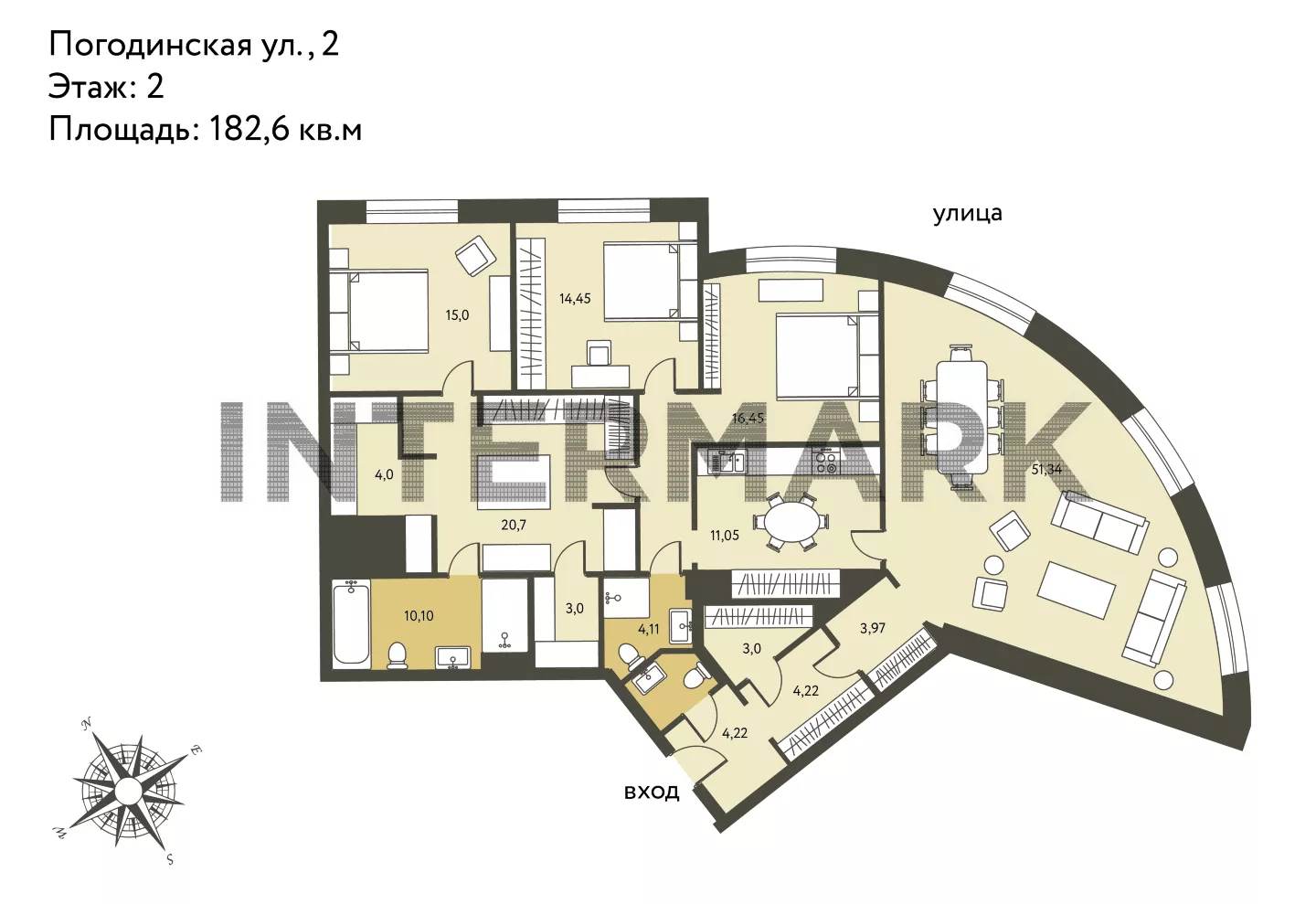 Изящная четырехкомнатная квартира с авторским интерьером в элитном ЖК Жизнь на Плющихе в районе Хамовники. Выполнен дизайнерский ремонт, воплощающий философию сдержанной роскоши — эстетика основана на безупречном качестве материалов и мебели от итальянских брендов Minotti, Arte Brotto, Rimadesio, Poltrona Frau, Pianca, Poliform, Olivieri, где каждая деталь декора говорит о взыскательном вкусе. Планировка включает кухню, полукруглую гостиную с 3 окнами, 3 спальни, 3 санузла, просторную зону гардеробных с отдельными помещениями для хранения, постирочную комнату. В квартире установлены приточно-вытяжная вентиляция, cистема очистки воды, кондиционеры Daikin. Есть машиноместо в подземном паркинге.