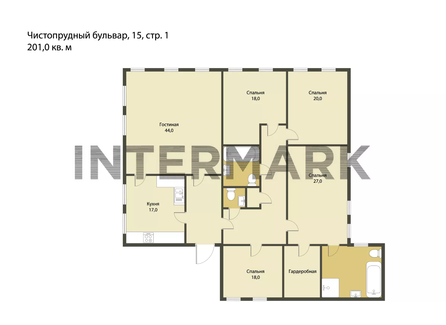 Планировка: кухня, 4 спальни, гардеробная, постирочная, 3 санузла.