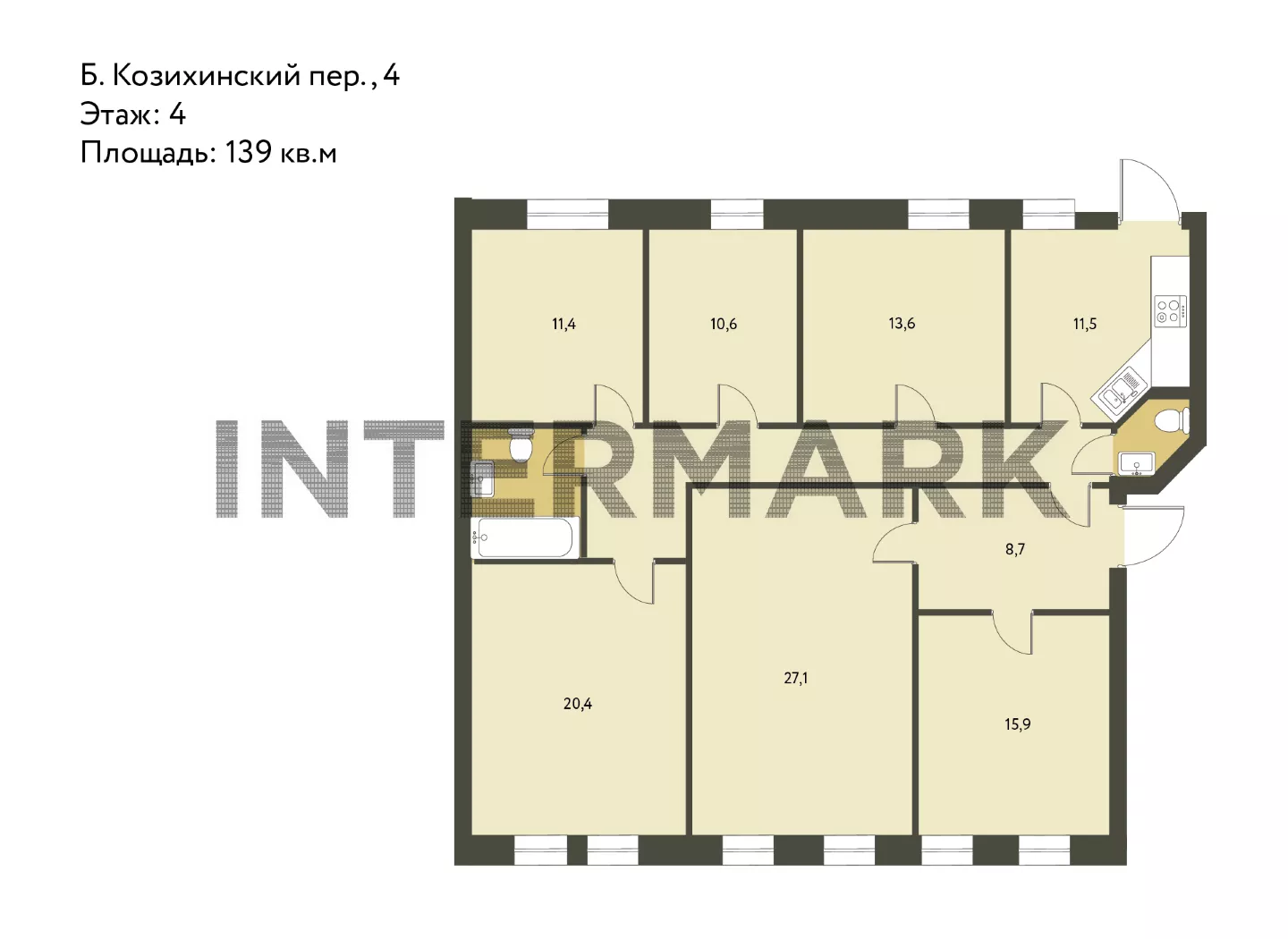 Просторная квартира с высоким потенциалом в фасадном доме на 6 квартир в 5 минутах от Патриаршего пруда. Главное преимущество – отсутствие несущих стен и двухсторонняя ориентация окон, можно перепланировать жилое пространство под любой сценарий жизни без дорогостоящего демонтажа и согласований. В одной из спален спроектированы арочные окна. На потолке высотой 3,2 м сохранили аутентичную лепнину, на полу – паркет в технике «шашки». Часть окон обращена большой закрытый двор-сад, остальные - поверх крыш исторических особнячков.