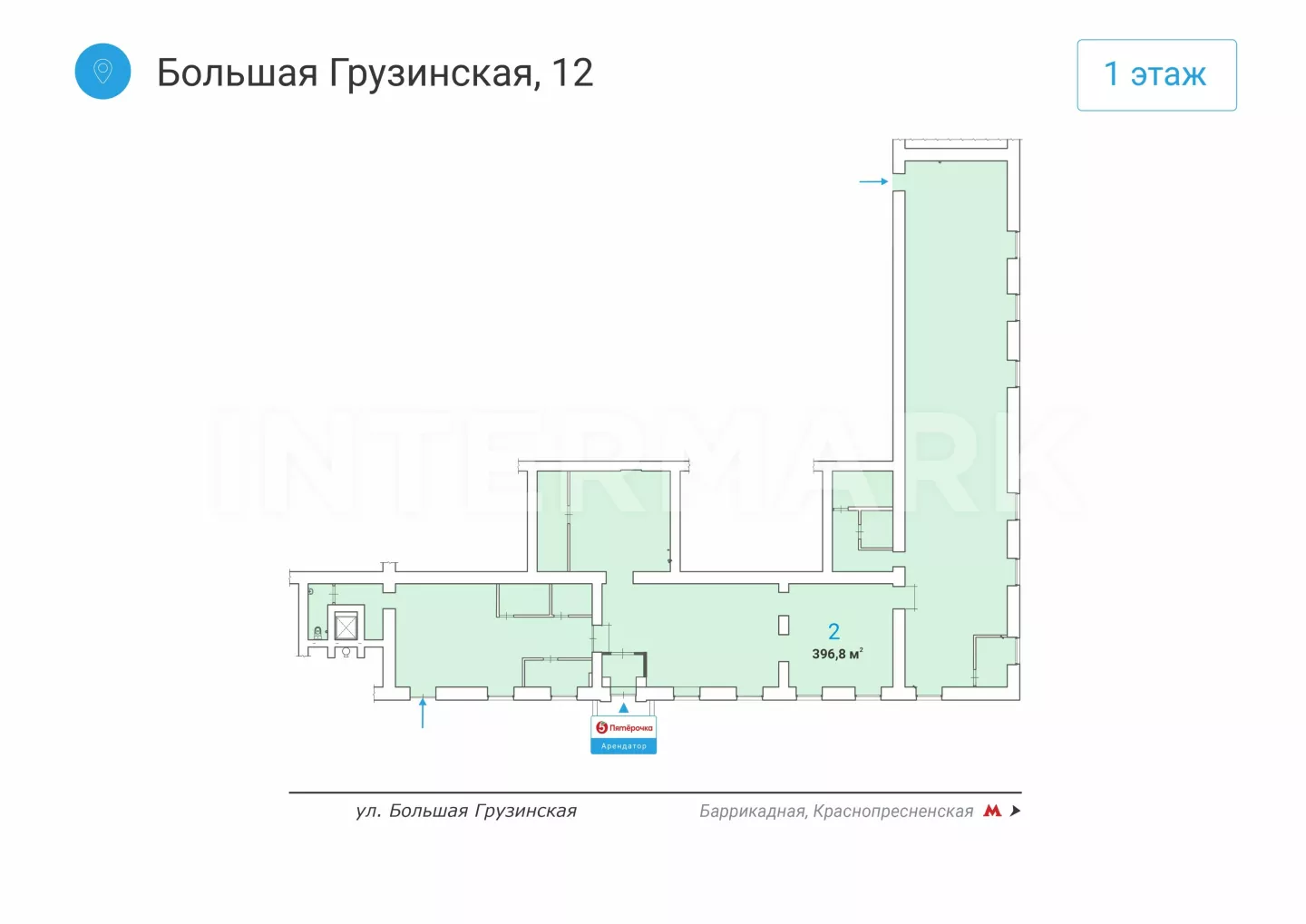 Предлагается к продаже помещение с арендатором - сетевым магазином "Пятёрочка" - у метро «Баррикадная» и «Краснопресненская» — 5 минут пешком. Крупный жилой и деловой район. Отличная пешеходная и транспортная доступность. Высокий рекламный потенциал и возможность размещения вывесок на фасаде. Городская парковка вдоль фасада здания. Характеристика объекта: планировка — открытая (свободная), перекрытия — ж/б, высота потолков — до 3,2 м. Отдельная входная группа с фасада. Достаточное количество электроэнергии под любой вид деятельности. Все городские инженерные коммуникации.