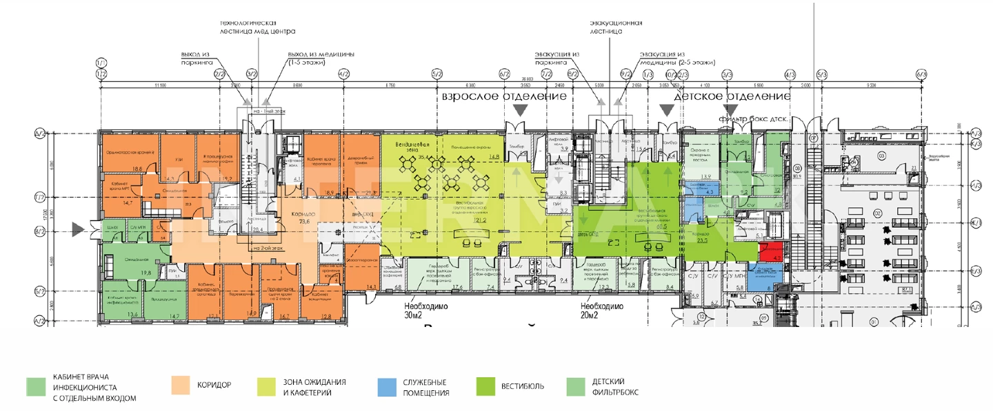 В продажу предлагается медицинский центр в бизнес-комплексе Сити-Строгино. Расположение в одном из самых живописных районов: в окружении более 89 гектаров зеленых массивов, 24 км береговой линии Москвы-реки и живописной набережной вдоль Строгинской поймы. В парковой зоне — функциональная сеть беговых и велодорожек для эффективных и вдохновляющих тренировок. Инфраструктура: ресторан высокой кухни и лобби бар, гостиница, конференц-холл, SPA с панорамным бассейном, фитнес-центр, супермаркет, фудхолл и кофейня. Удобное расположение: 3 мин до метро «Липовая Роща» (2027 г.), 35 мин до делового центра Москвы, 2 мин до МКАД, 3 мин до Новорижского шоссе. Концепция медицинского центра: Основные структурные подразделения: консультативно-диагностическое отделение для взрослых, консультативно-диагностическое отделение для детей, отделение эндоскопии, отделение функциональной диагностики, отделение стоматологии, отделение лучевой диагностики, вспомогательные службы. Общая площадь медицинского центра 6 283 кв.м., из них 4 730 кв м приходится на наземную часть (5 этажей), а 1 553 кв ² — на подземную (2 этажа). Высота потолков на первом этаже — 5,5 м, на остальных пяти этажах — 3,6 м. На минус первом этаже планируется размещение кабинетов КТ, МРТ и рентген. На минус втором этаже - подземный паркинг.и подсобные помещения. Готовность - 4 кв. 2027 г.
