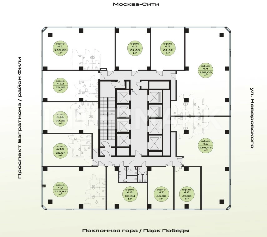 Предлагается к продаже офис в премиальном БЦ "Цетлин", класса А+. Общая площадь БЦ - 27.400 кв.м. Большой Сити - стремительно развивающийся масштабный кластер, представляющий собой новый общественно-деловой центр и комфортное для жизни городское пространство, формируется на территории 5 районов Москвы и охватывает площадь 3200 га. Концепция Большого Сити – создание элементов нового городского центра, совпадающих с зонами наибольшей транспортной обеспеченности. В пешей доступности от БЦ находятся станции метро Фили, Парк Победы и Багратионовская. Архитектура неокубизма, подчеркивающая лаконичность и строгость форм. Приватные офисы с террасами и highspace-офисы с потолками 11,5 метров. Двухсветное лобби высотой 11,5 метров с приватной зоной для отдыха и встреч. Вся необходимая инфраструктура на двух первых этажах бизнес-центра. Двухэтажный паркинг для машин и мотоциклов с автомойкой на 3 поста. Инфраструктура: успешное ведение бизнеса не терпит потери времени, поэтому здесь предусмотрели всю необходимую инфраструктуру прямо в здании: от зарядных станций для электромобилей и автомойки в паркинге до ресторанов, минимаркетов и клиентских офисов на втором этаже. Благоустройство: при площади всего участка 0,58 га площадь благоустройства занимает около 900 м2. Внутренний парк-сад будет разделен на зону с арт-объектами, зону отдыха с беседками, коворкинг на улице и зеркальное озеро. На территории будет высажено более 14 крупномеров и 130 кустарников. Характеристика объекта: высота потолков: в зоне лобби — 11,5 м, в ритейле — до 5 м, в офисах — 3,7 м, а в скай-офисах — до 7,5 м. Скоростные лифты с минимальным уровнем шума и раздельными зонами подъема. Центральная система кондиционирования и приточно-вытяжная вентиляция. Правильная форма помещений и шаг колонн до 8,5 метров позволяют использовать пространство с максимальной эффективностью. Круглосуточное видеонаблюдение, многоуровневая система охраны и электронные ключи для резидентов бизнес-центра. Срок сдачи: 4 кв. 2027.