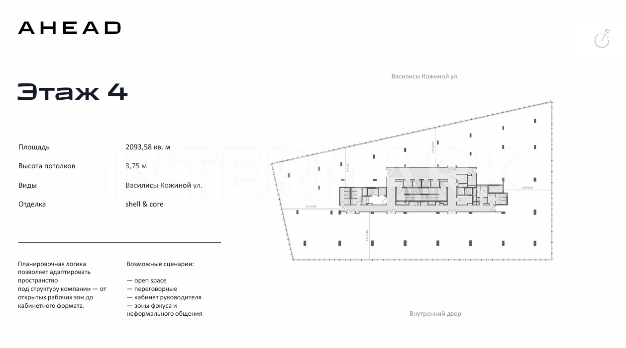 Продажа бизнес-центра на Кутузовском проспекте - многофункциональный комплекс AHEAD, 10 мин до Москва-Сити, 5 мин от Рублевского шоссе, 5 мин до проспекта Багратиона. Рядом располагаются несколько станций метро: Филевский Парк в 10 минутах, Парк Победы, Минская, Славянский бульвар в 20 минутах. Комплекс имеет прекрасные виды на Москва-Сити, Парк Победы, Парк фили, МГУ им. Ломоносова. Технические характеристики: централизованная; система кондиционирования с регулированием температуры; подземный паркинг; противопожарная система; приточная вентиляция; закрытая территория. SCHUCO Двухкамерные стеклопакеты класса А с повышенной шумоизоляцией. Резерв мощности до 150 Вт/м². Индивидуальный микроклимат по зонам VRF. Видеонаблюдение и биометрический доступ 24/7. Общая площадь офисов 10 677 кв.м., 3,75 м высота потолков, клубный формат - 36 лотов. 67 м/м в подземном паркинге. В стоимость входит 60 машиномест.